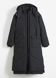 Long-Steppjacke, wattiert mit Kragen und Kapuze