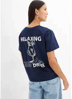 Baumwoll T-Shirt mit Seitenschlitz und Druck