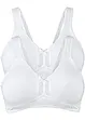 Dieser BH ohne Bügel aus Bio-Baumwolle im praktischen Zweierpack aus der bpc Kollektion überzeugt mit einem angenehmen Tragegefühl. Leichte Polsterungen an den Trägern sorgen für einen hohen Komfort. Der softe Unterbrustgummi ergänzt das Modell.Zwischen den Cups verziert eine Spitzenapplikation den BH im Zweierpack. Auf der Rückseite schließt er mit einer Haken-Ösen-Variante.